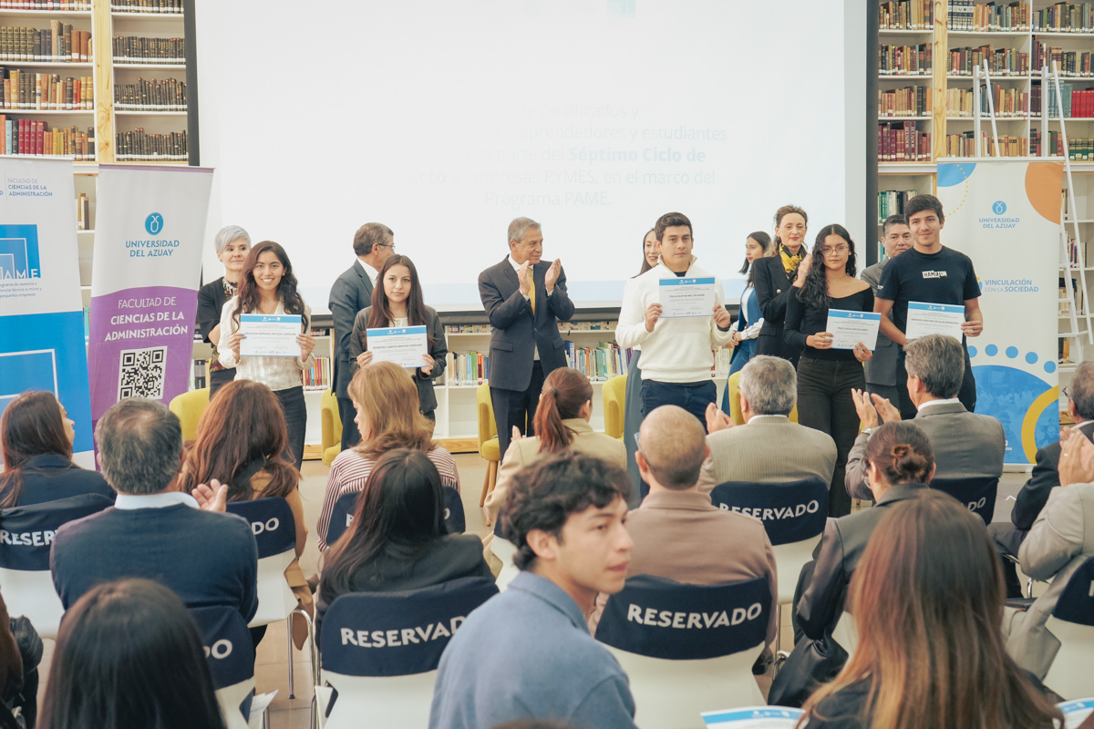 Entrega de certificados y conversatorio del programa PAME, séptimo ciclo de impacto en la Universidad del Azuay