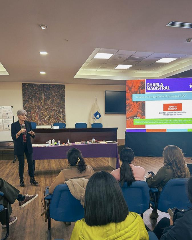Nuestra directora de Vinculación, Juanita Bersosa, intervino como moderadora y ponente en espacios de diálogo sobre agua, género y gobernanza local, reafirmando el compromiso institucional con los ODS y la construcción de una sociedad más equitativa y sostenible.